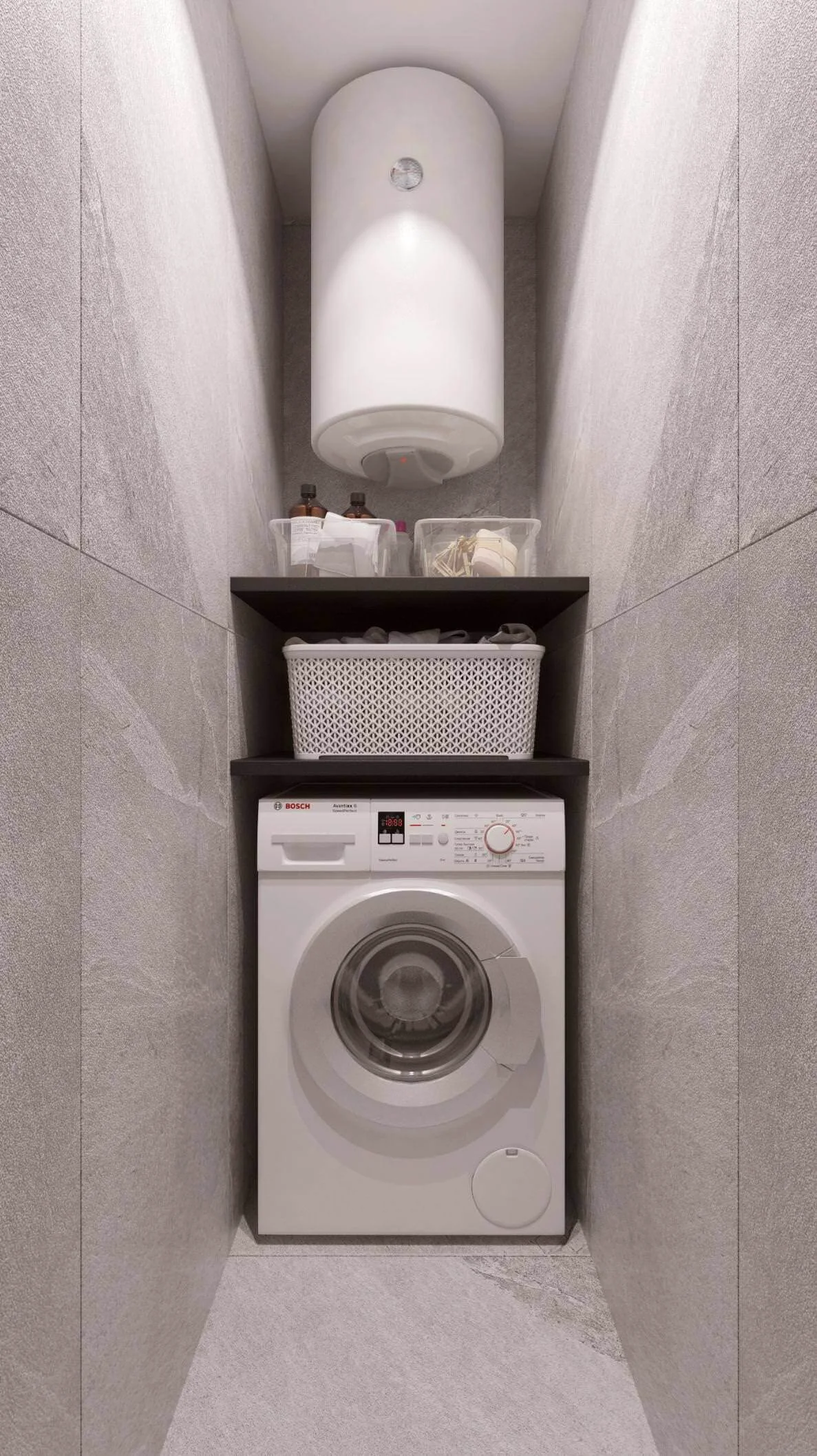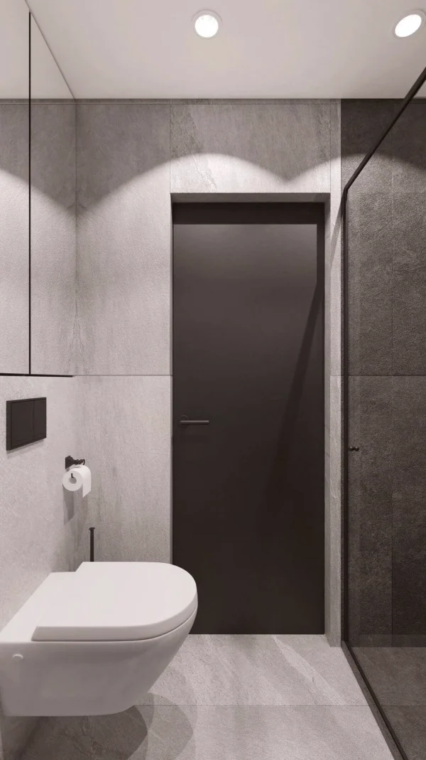 Также особенностью проекта выступают необычный выбор керамогранитной плитки в общей зоне и ванной комнате, конечно же по всей квартире использовали теплые полы.
