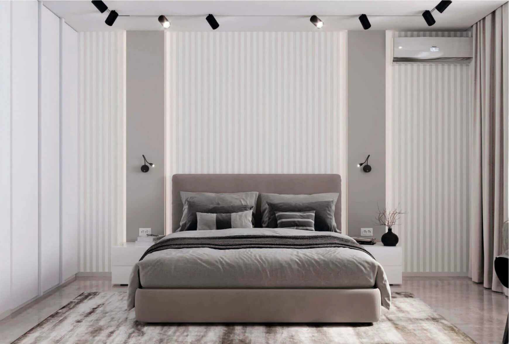 В проекте мы активно использовали стеновые панели разных оттенков и форм. Они добавляют игру фактур и цвета. Также на стенах использованы обои необычных оттенков и необычной мягкой текстуры.