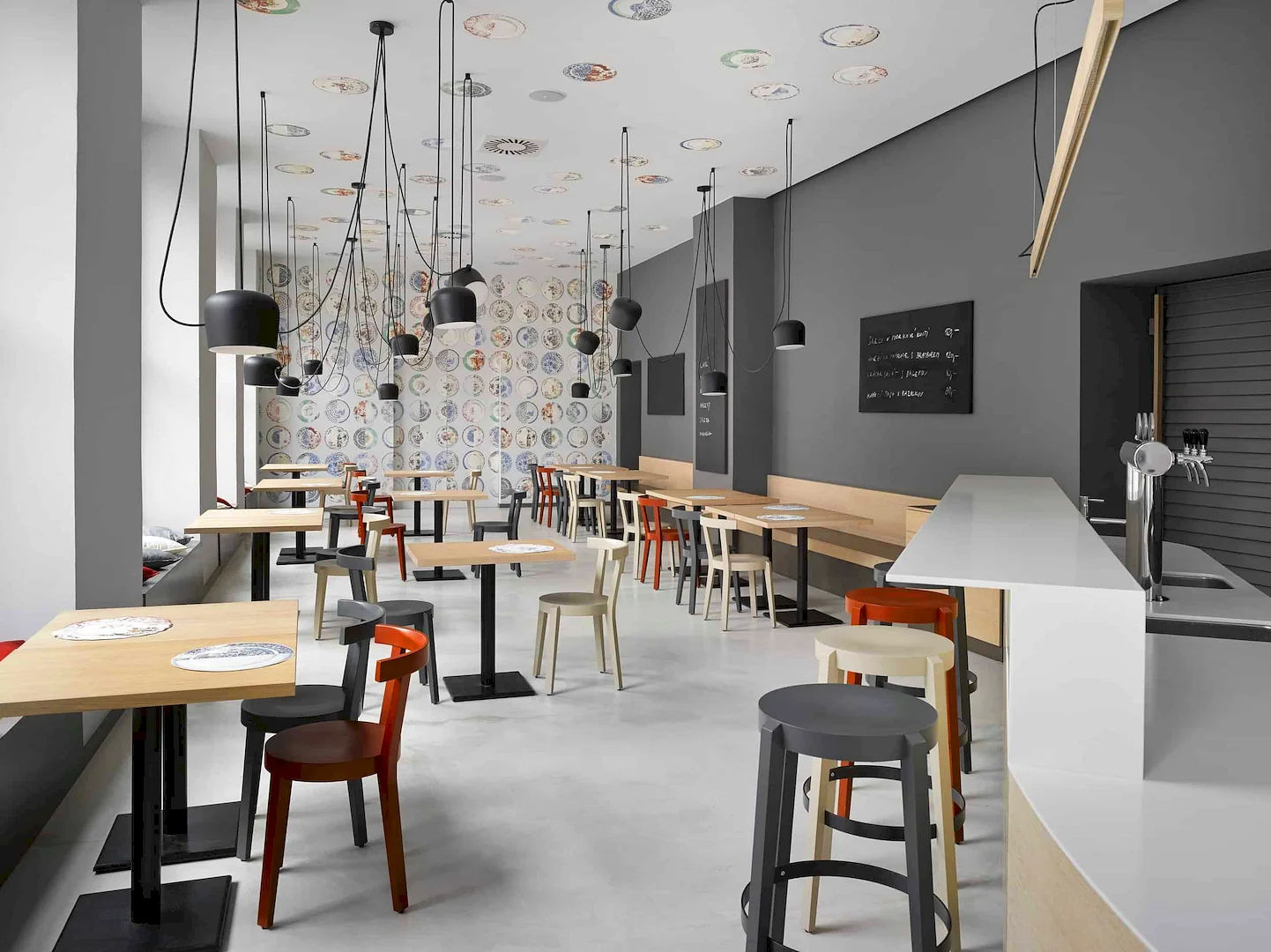 Цветовая палитра: выбор цвета поверхностей и стен должен способствовать как визуальному комфорту посетителей, так и общей гармонии с общей концепцией заведения. Используйте теплые оттенки для уютной атмосферы или яркие акценты для более современного и динамичного вида.