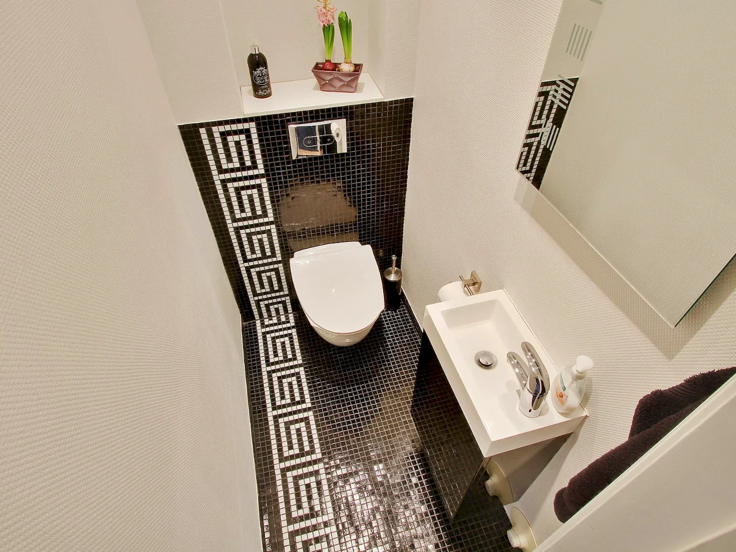 Для маленького туалета лучше выбирать светлые и нейтральные цвета, так как они визуально расширяют пространство. Хорошим выбором будет белый, светло-серый или пастельные оттенки. Для добавления акцентов можно использовать яркие цвета, но в ограниченных количествах.