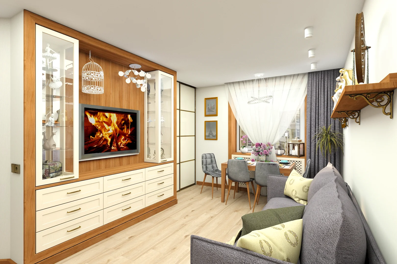 Обновление стиля: В другом проекте наши специалисты занялись созданием элегантного и уютного домашнего амбиента, сочетая классические и современные элементы дизайна. Основное внимание было уделено изяществу и функциональности каждой части помещения.
